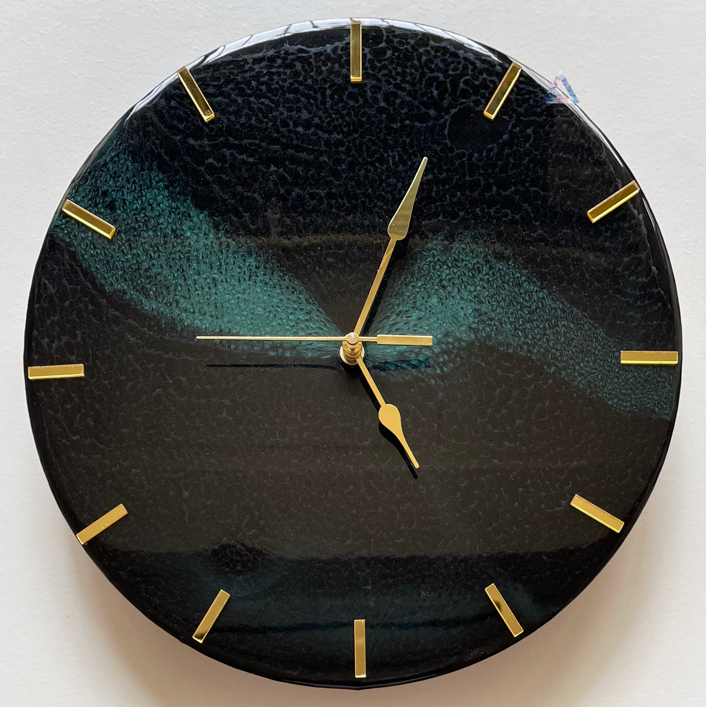 Custom Abstract themed round clock made with Resin on a MDF surface.