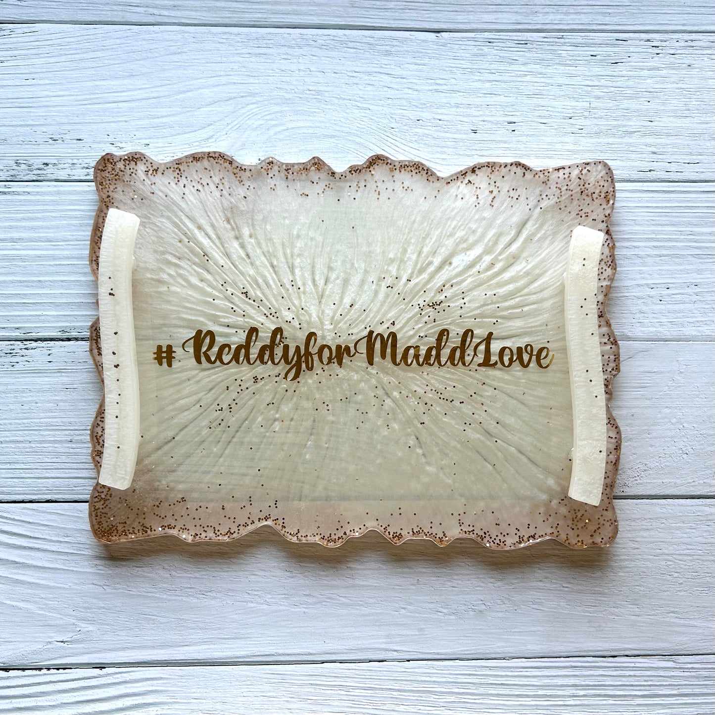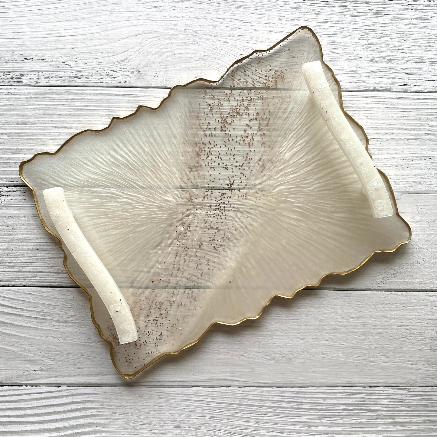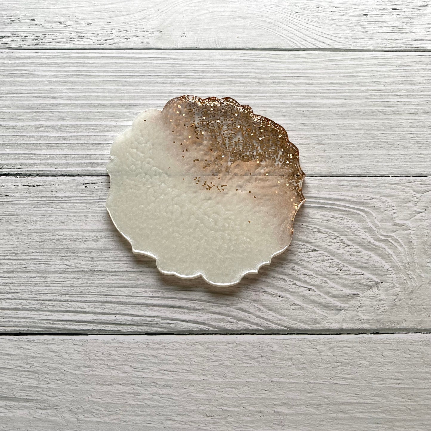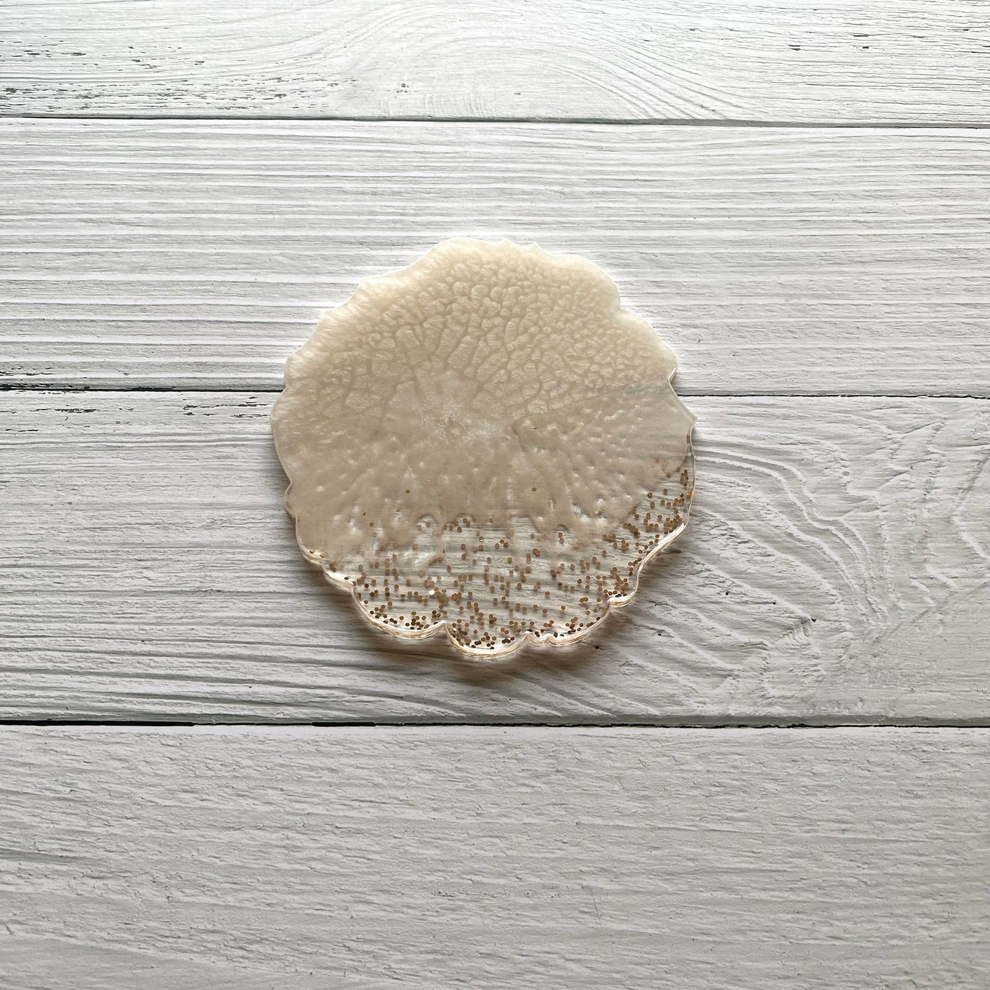 A set of four coasters and tray made with premium quality resin, with an ivory tone.