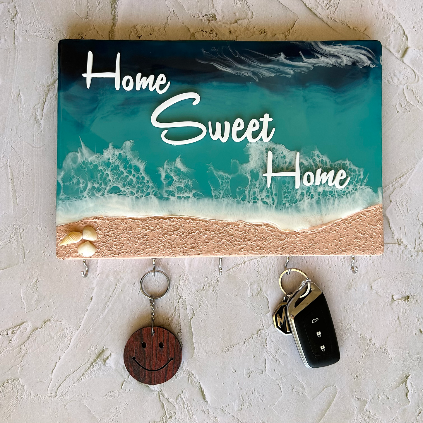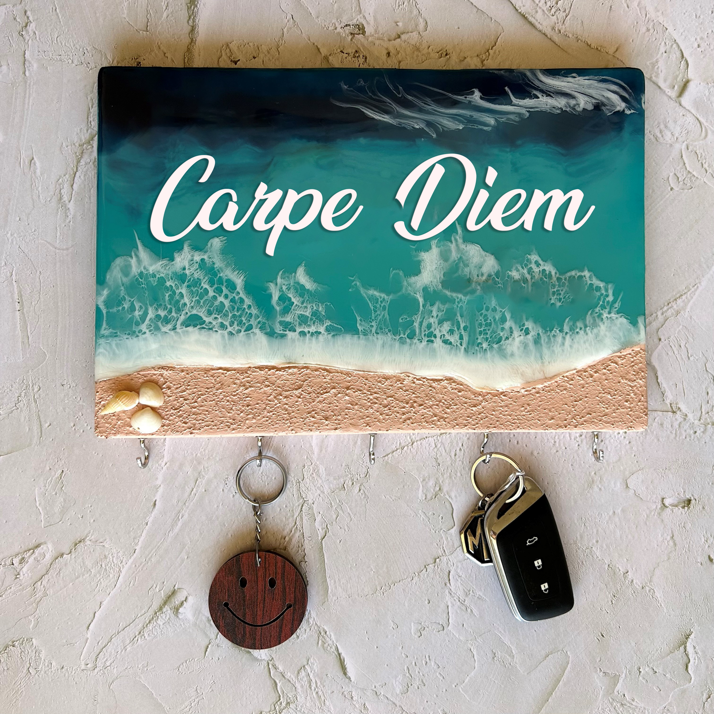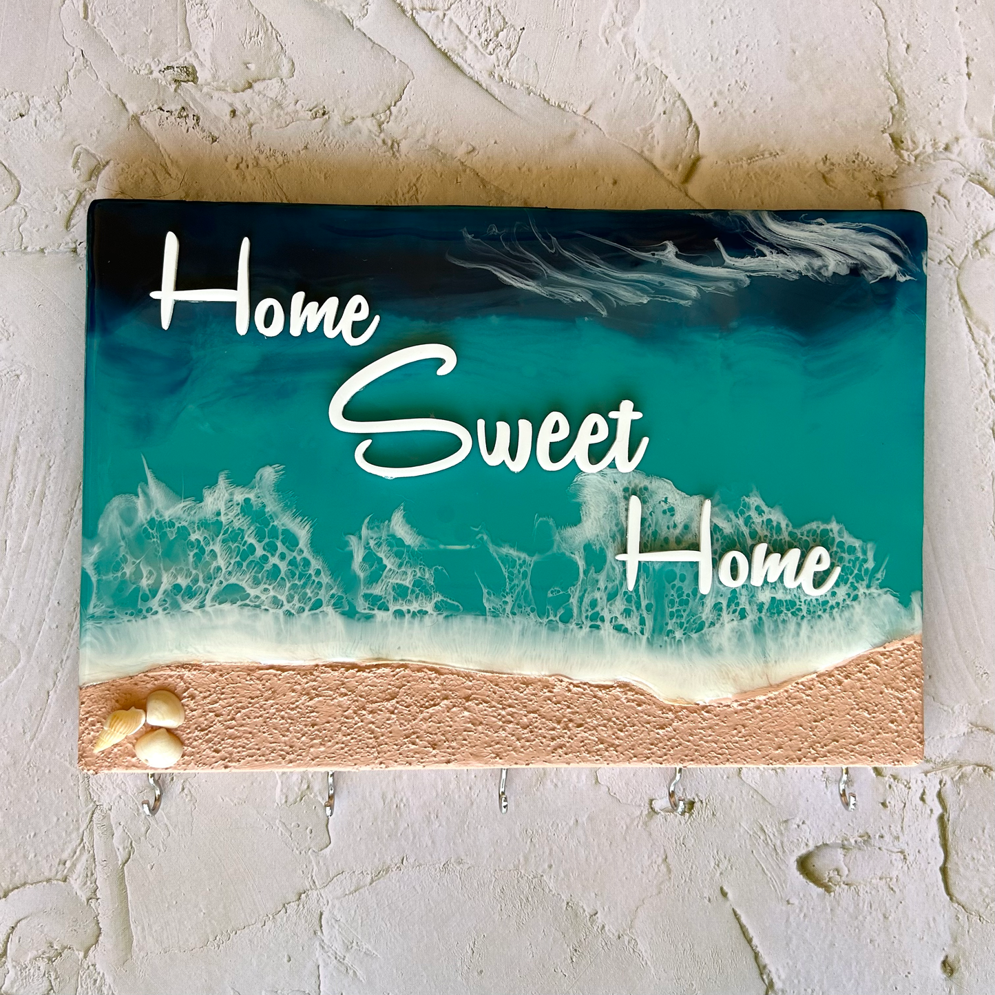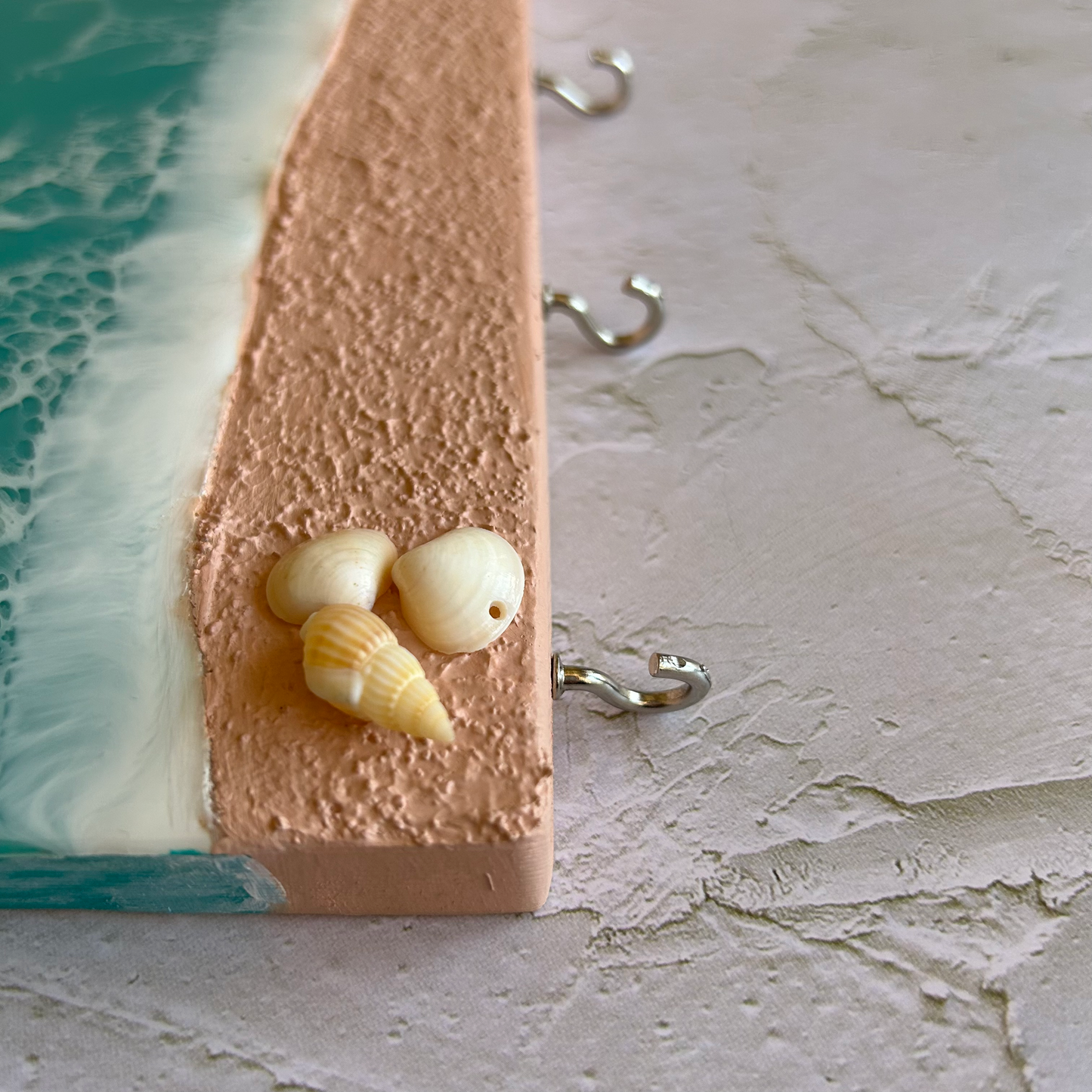 Ocean themed key holder made with Resin on a pine wood block.