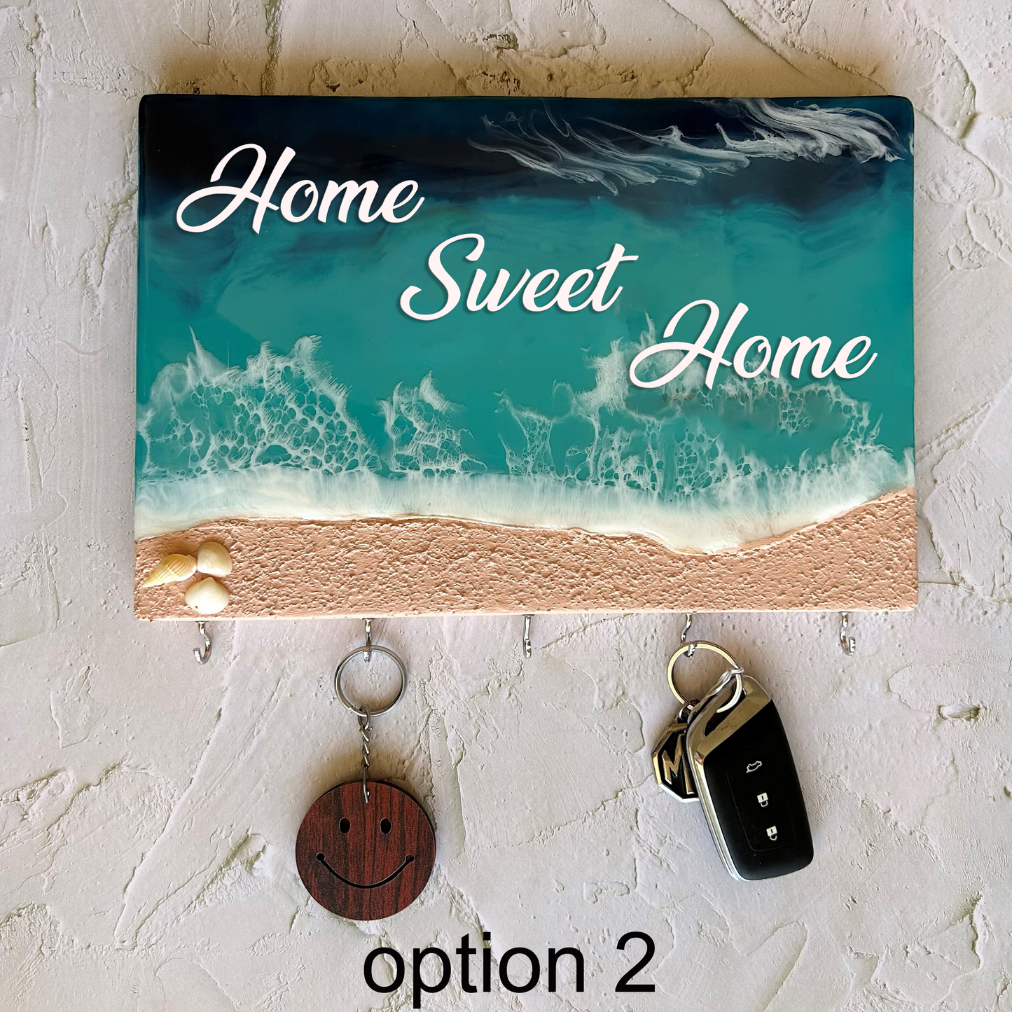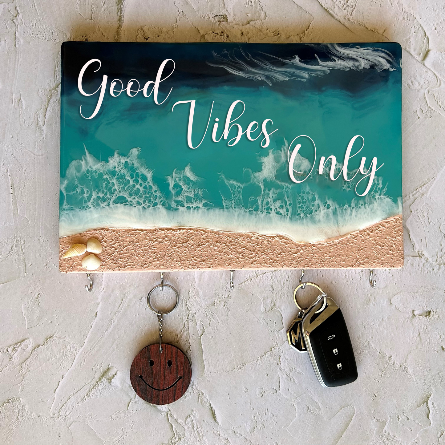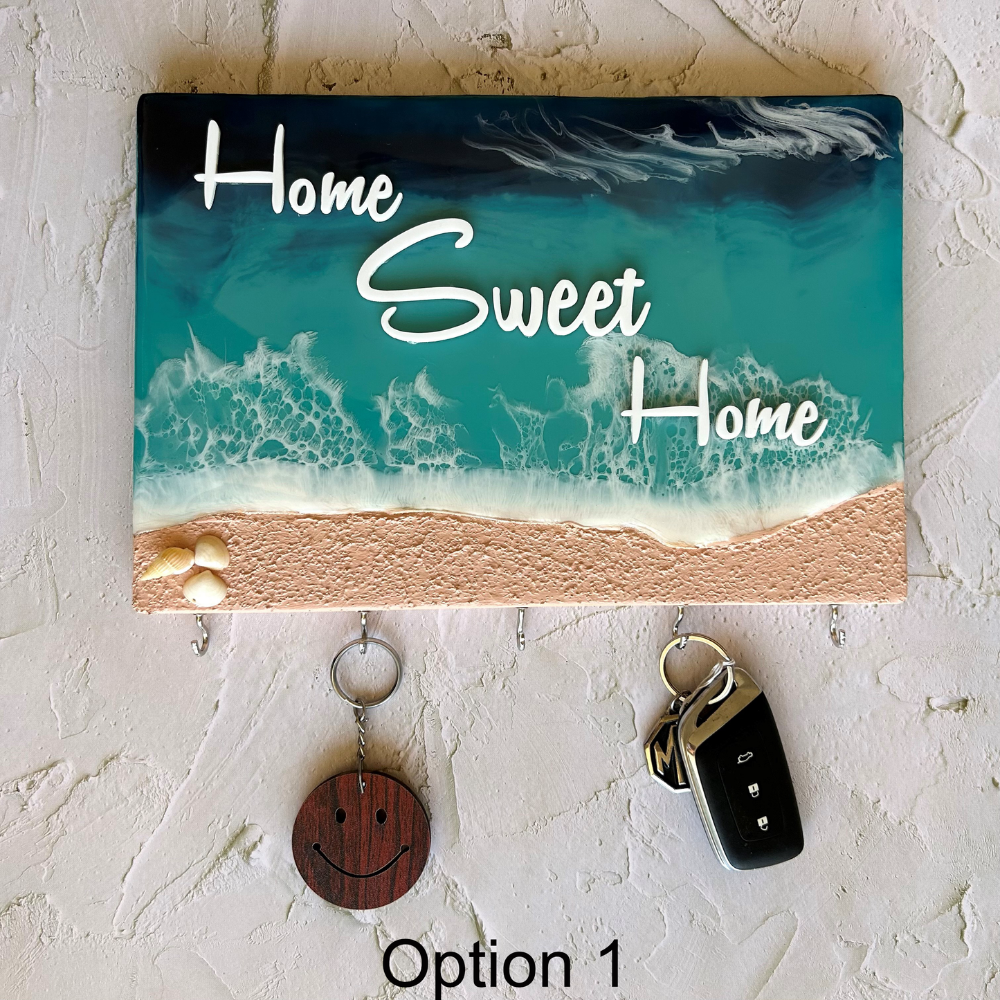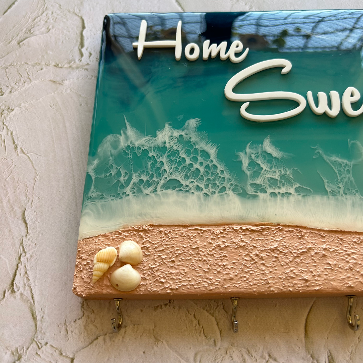 Ocean themed key holder made with Resin on a pine wood block.